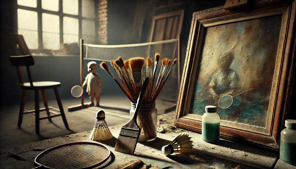 I tried to find someone to play with, hoping to relive those moments, but it wasn’t the same. The carefree laughter, the feeling of belonging, all of it had faded away. Now, I can only look at my old badminton racket gathering dust, just like my forgotten paintbrushes, and wonder if I’ll ever find the same happiness in those things again.